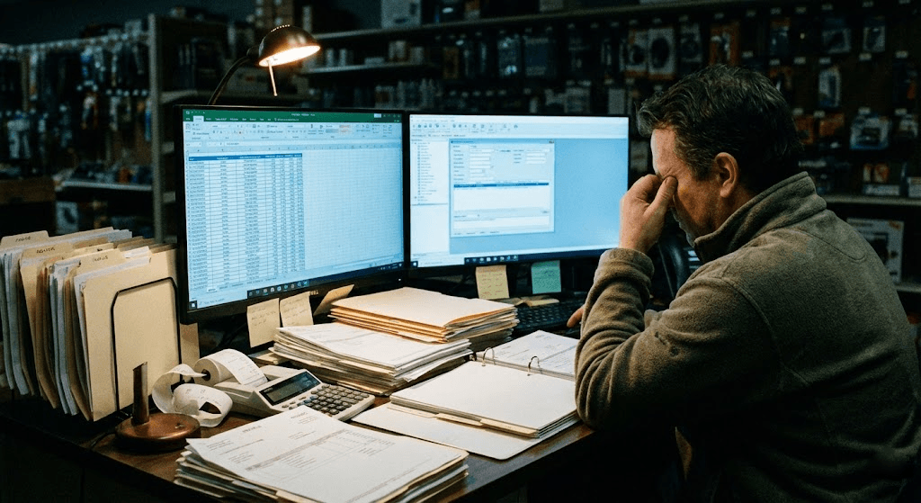 A diligent paint store owner spent 5-8 hours weekly reviewing reports, yet still missed a $4,200 pricing error that AI caught instantly.
