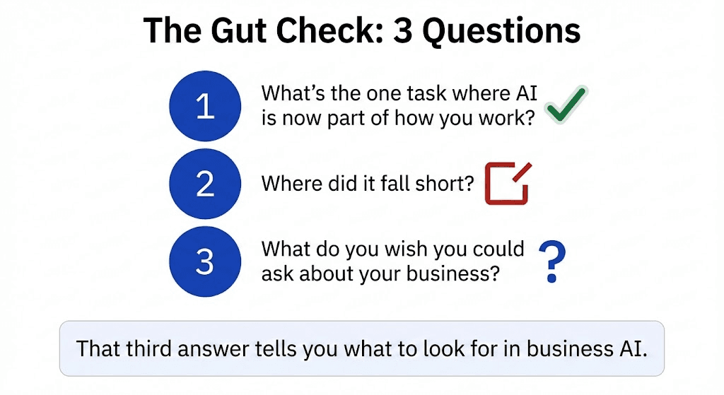 Then try this: ask the AI something only you would know. What should you reorder this week? What's your margin on a specific product?