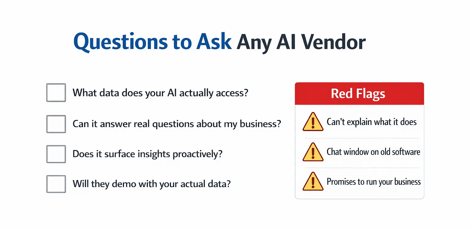 What data does your AI access? If it isn't connected to your sales, inventory, and operations, it's a chatbot with better design.